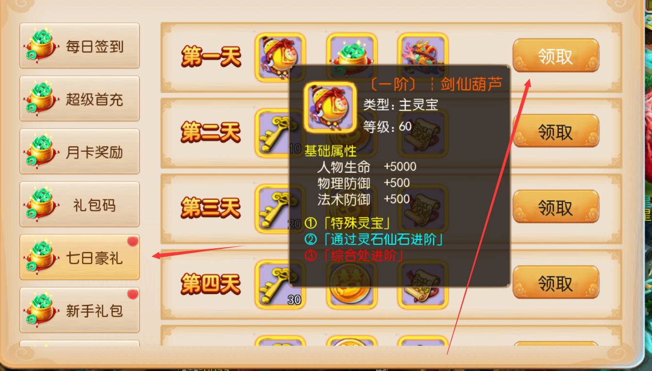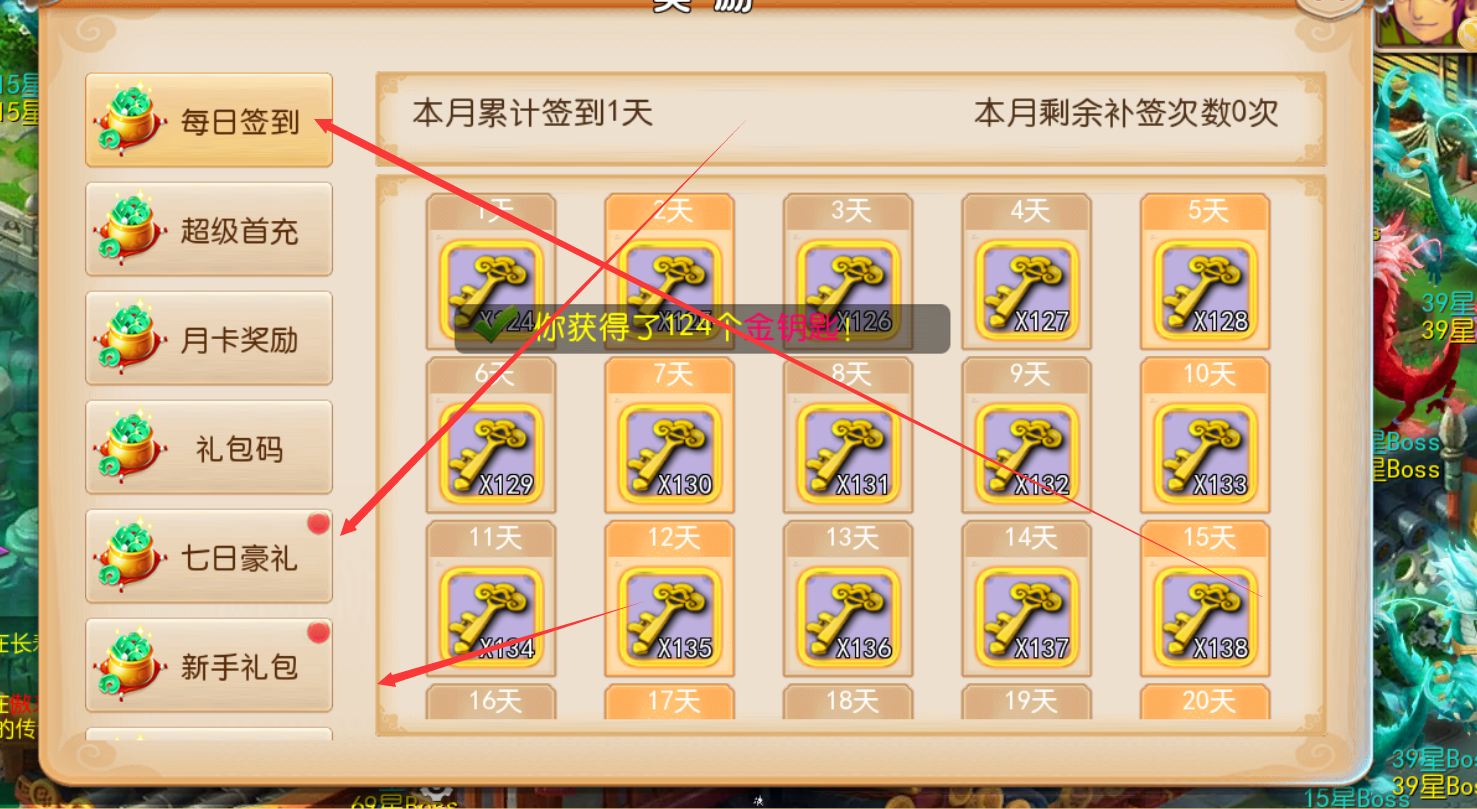 游戏里领取各种上线福利奖励